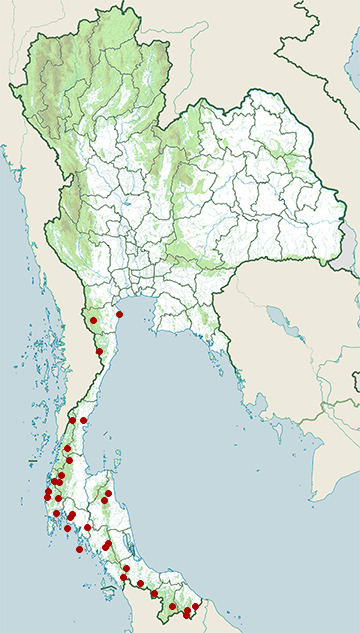 It is found in Brunei, Indonesia, Malaysia, Myanmar, Singapore, and Thailand.